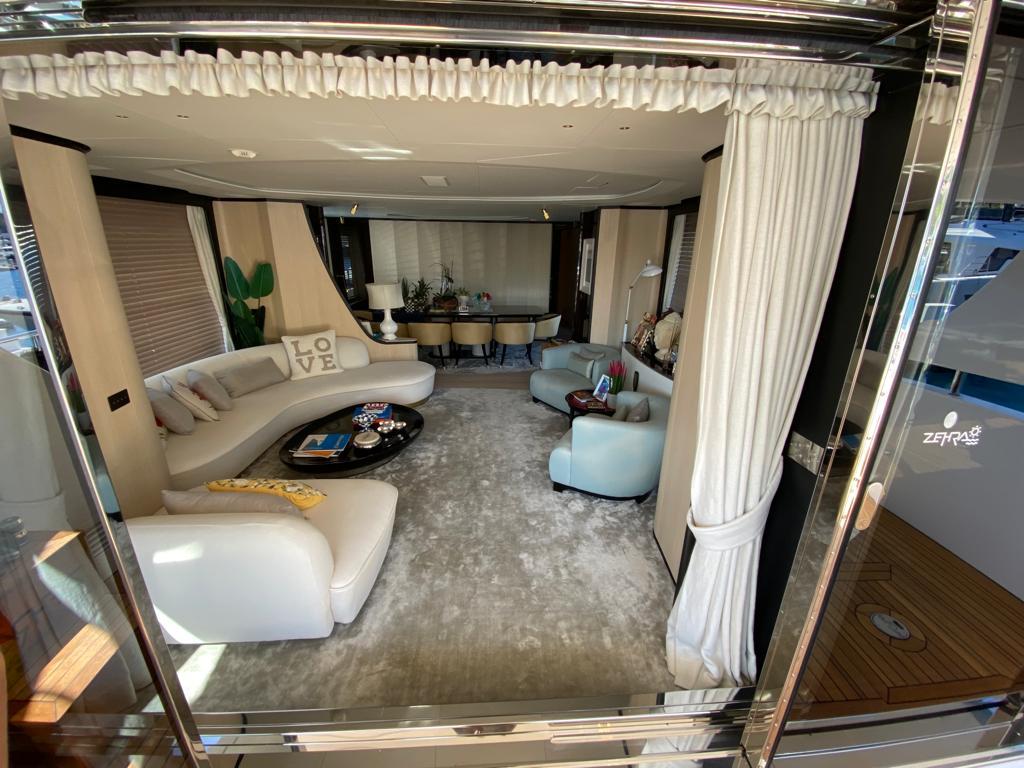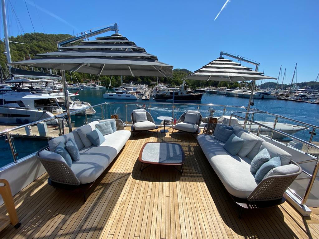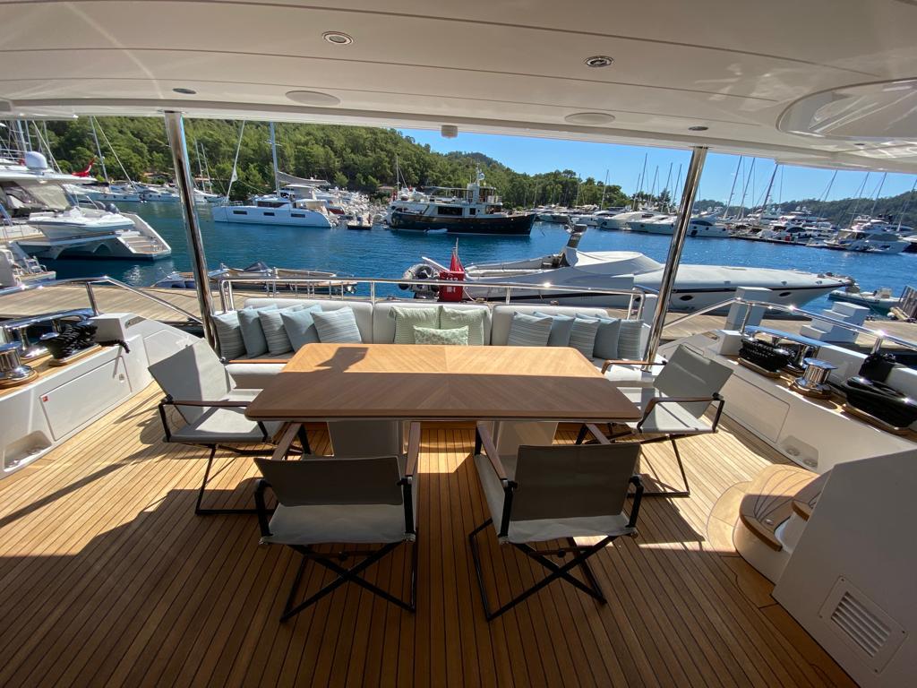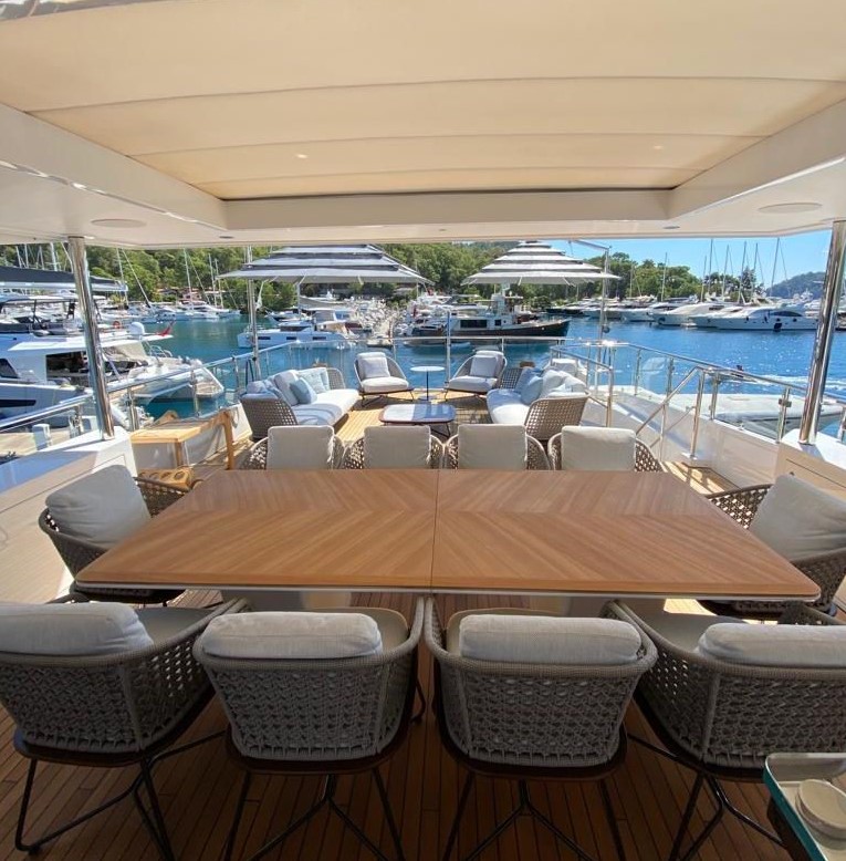 Jacuzzi donanımlı geniş sundeck, ferah flybridge ve ana güverte yaşam alanlarıyla birlikte, uzun seyirler ve misafir ağırlamak için ideal bir ortam yaratır.