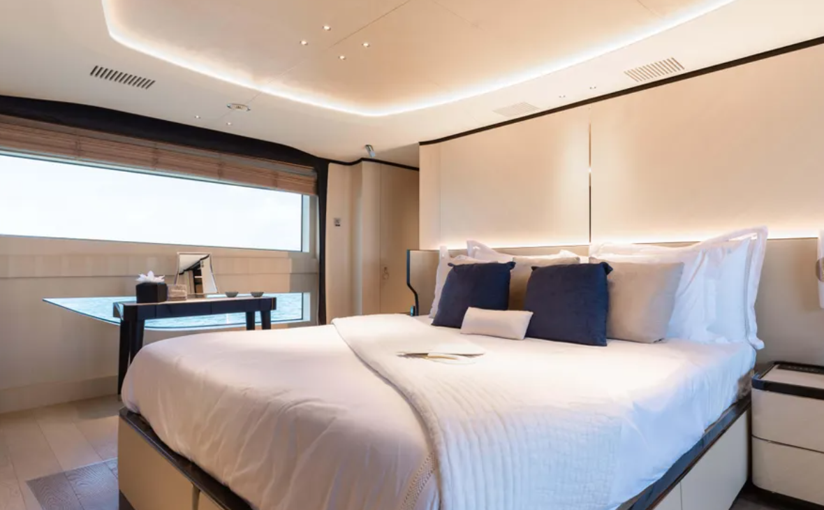 2018 Benetti Delfino 95, Benetti’nin tanınmış tasarım mirasını olağanüstü yaşam konforu ile birleştirerek, gerçek anlamda prestijli bir süperyat deneyimi sunar. Ana güvertede yer alan tam genişlikte Owner Suite ve 5 kabin yerleşimi, hem özel kullanım hem de misafirler için üstün düzeyde mahremiyet ve konfor sağlar.